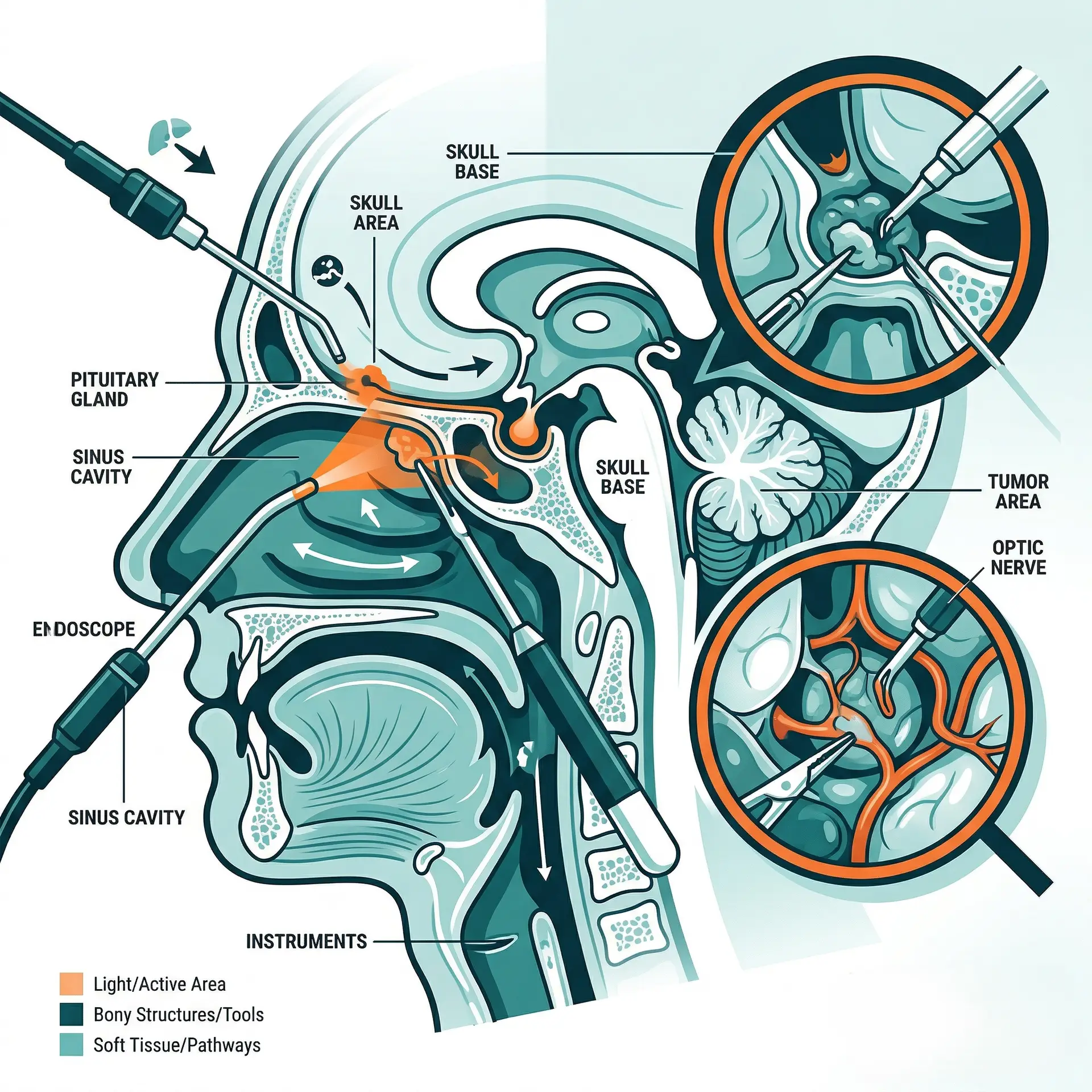 Advanced skull base surgery plays a vital role in treating complex conditions affecting the nose, sinuses, and surrounding structures. Our expertise includes precise anterior skull base surgery and specialized rhinology surgery for managing tumors, infections, and structural issues. Using modern endoscopic skull base techniques along with advanced sinus surgery, we ensure minimally invasive procedures with improved safety, faster recovery, and better outcomes for patients.
